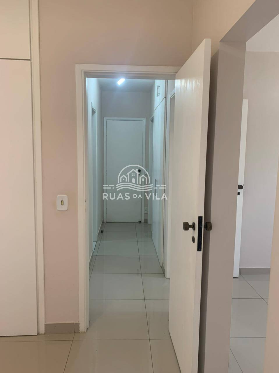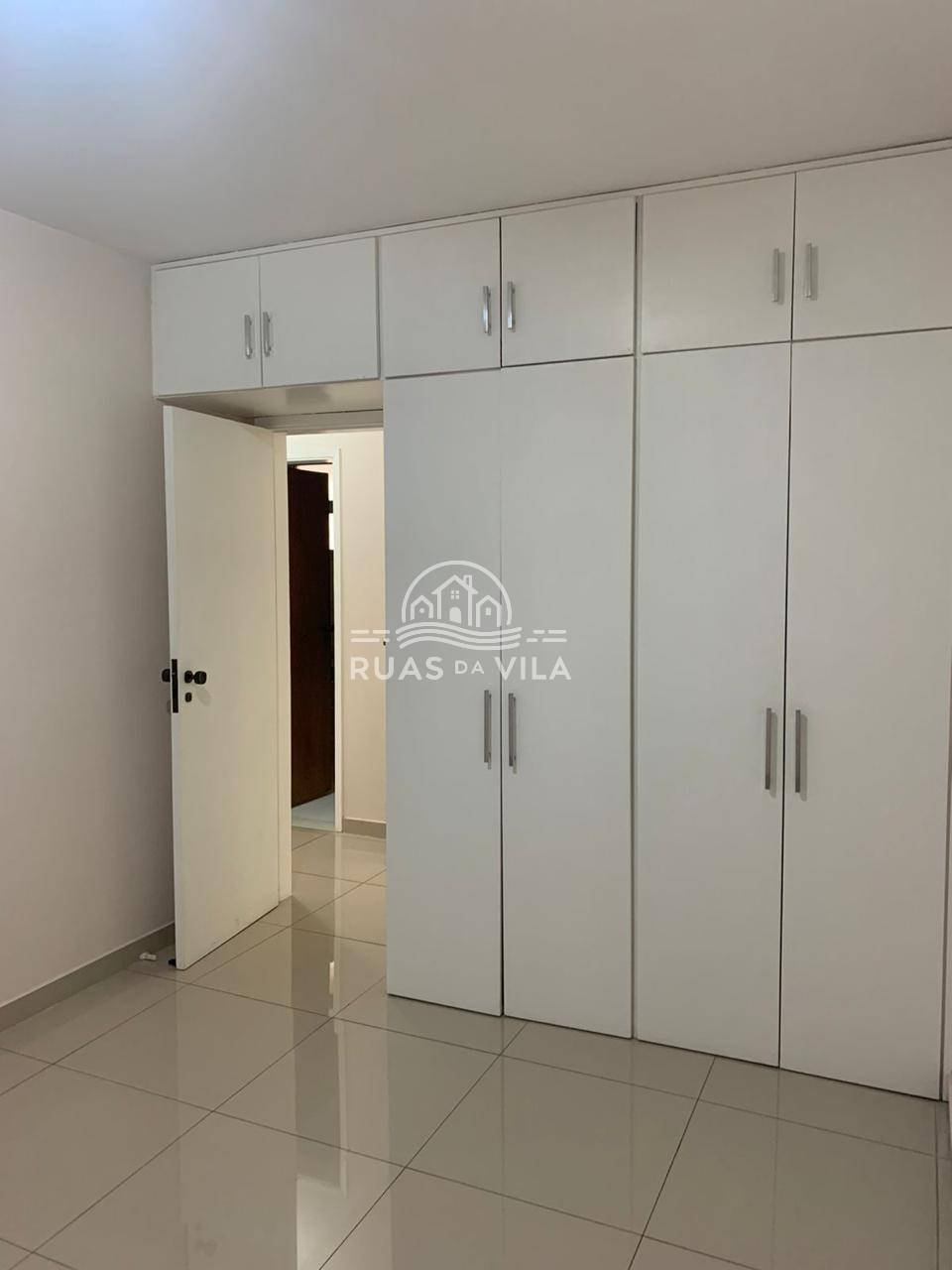 O apartamento conta com três quartos, sendo uma suíte, todos com móveis planejados, otimizando o espaço com elegância. O corredor com roupeiro traz ainda mais organização ao dia a dia.