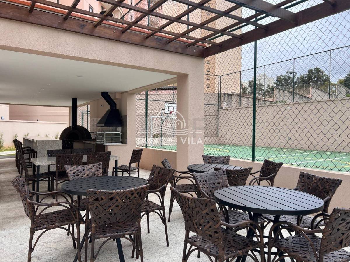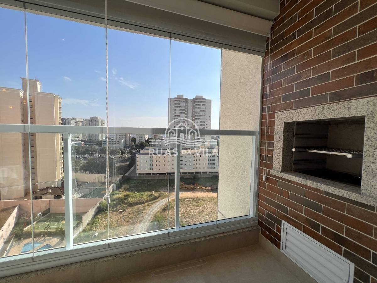 A varanda gourmet, um dos grandes destaques, permite o uso durante o ano todo, seja para refeições especiais ou para relaxar apreciando a vista.