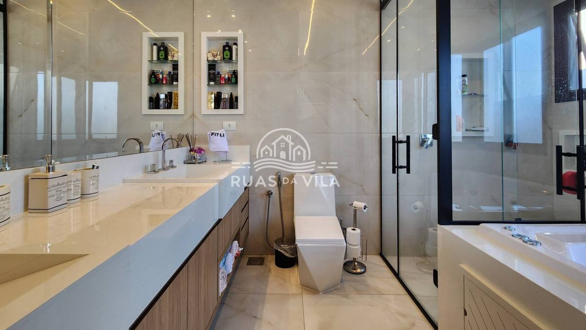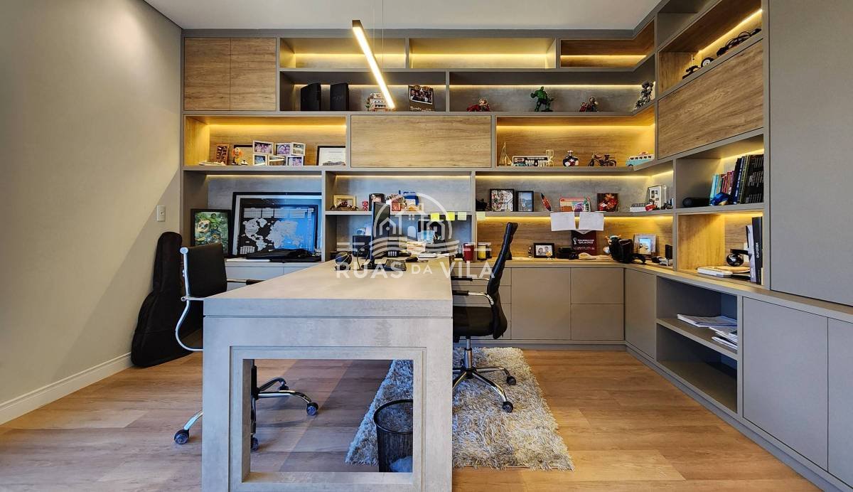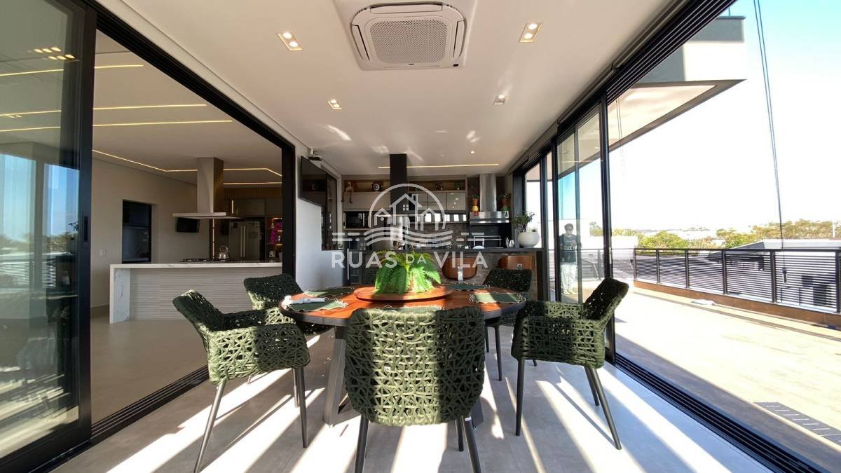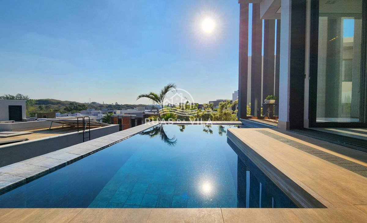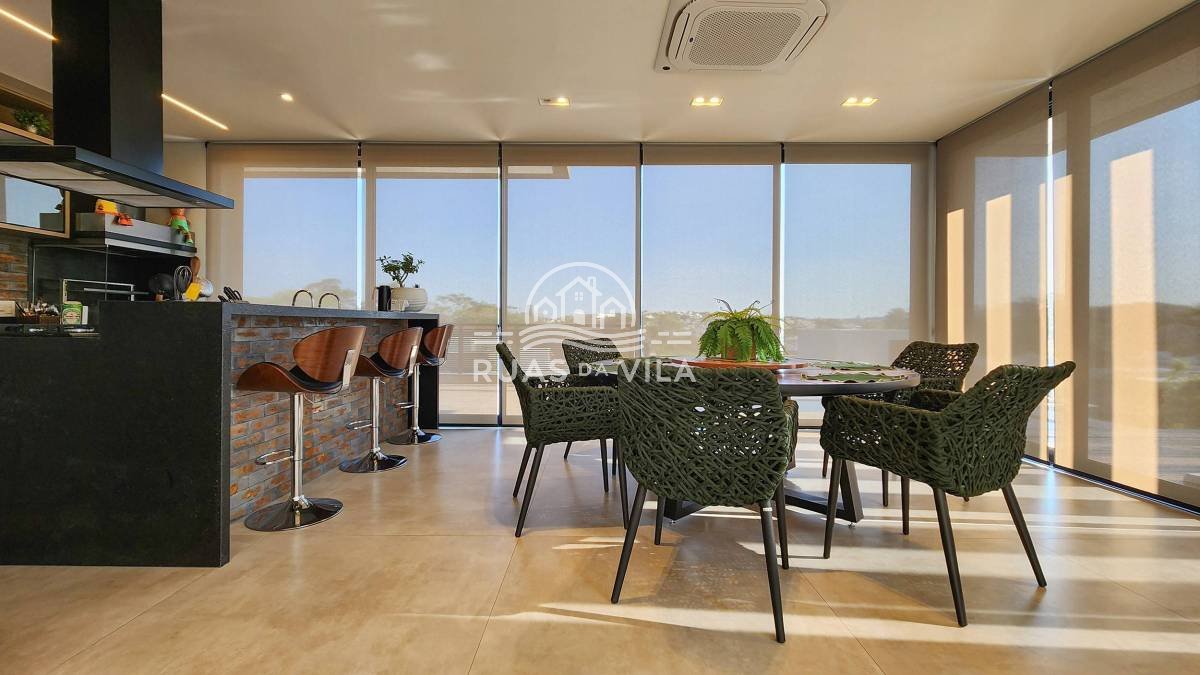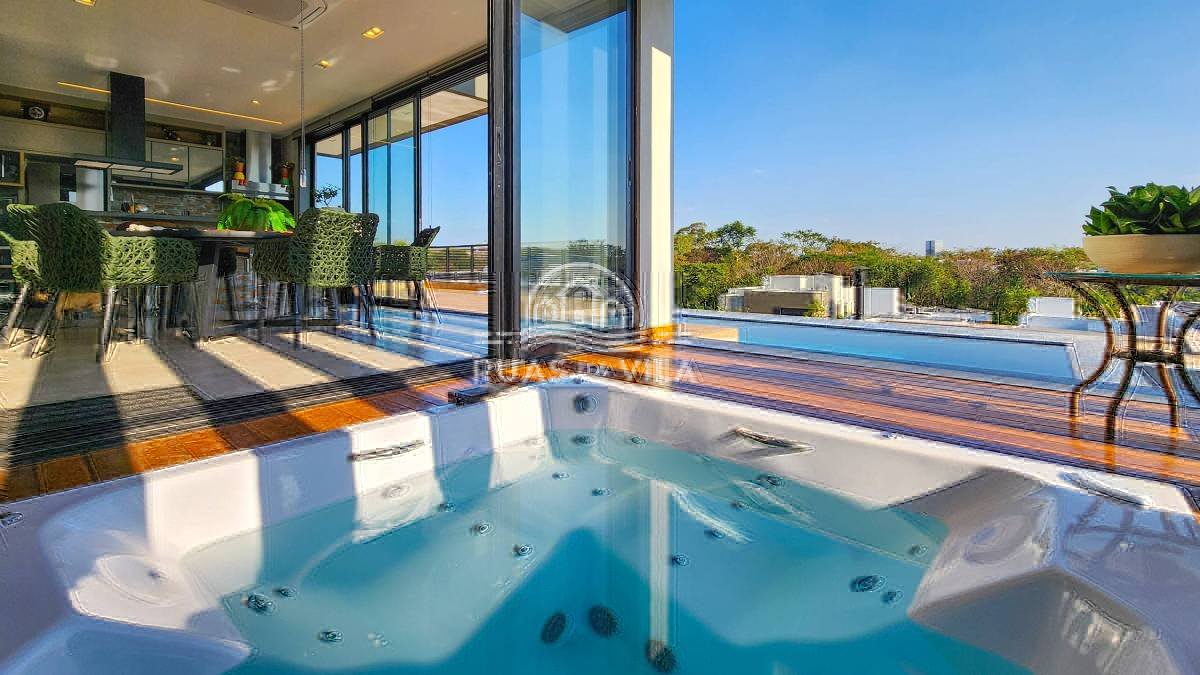 A área gourmet conta com churrasqueira, spa e piscina, ideal para momentos de lazer. Acabamentos de alto padrão, móveis planejados, projeto luminotécnico, persianas automatizadas e ar-condicionado em todos os ambientes.
