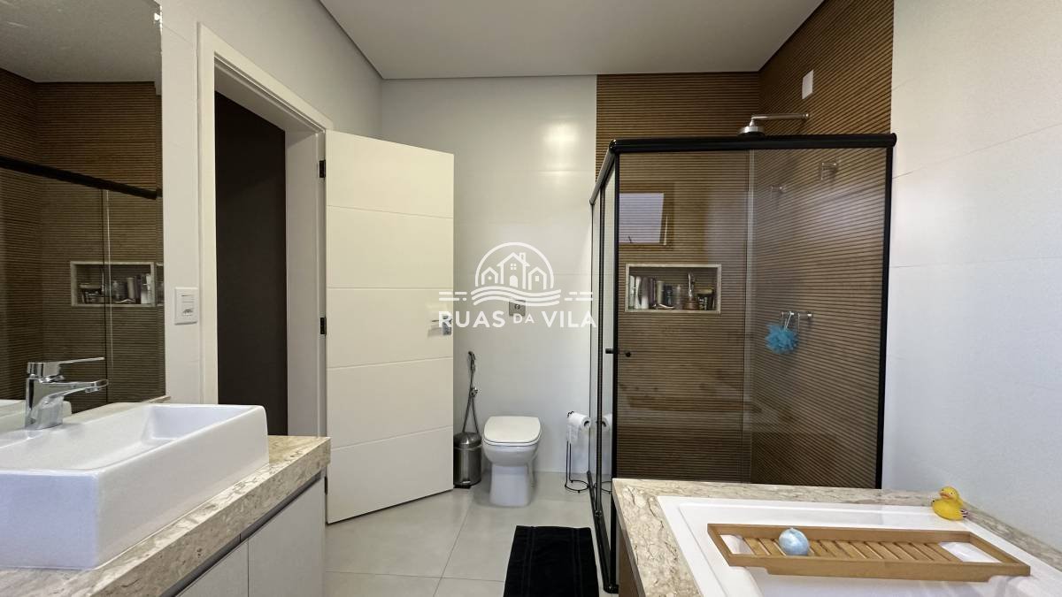 No piso superior, três espaçosas suítes proporcionam privacidade e conforto, com destaque para a suíte master, que inclui um closet e uma banheira de hidromassagem, um home office e há também uma sacada que permite momentos de relaxamento ao ar livre.